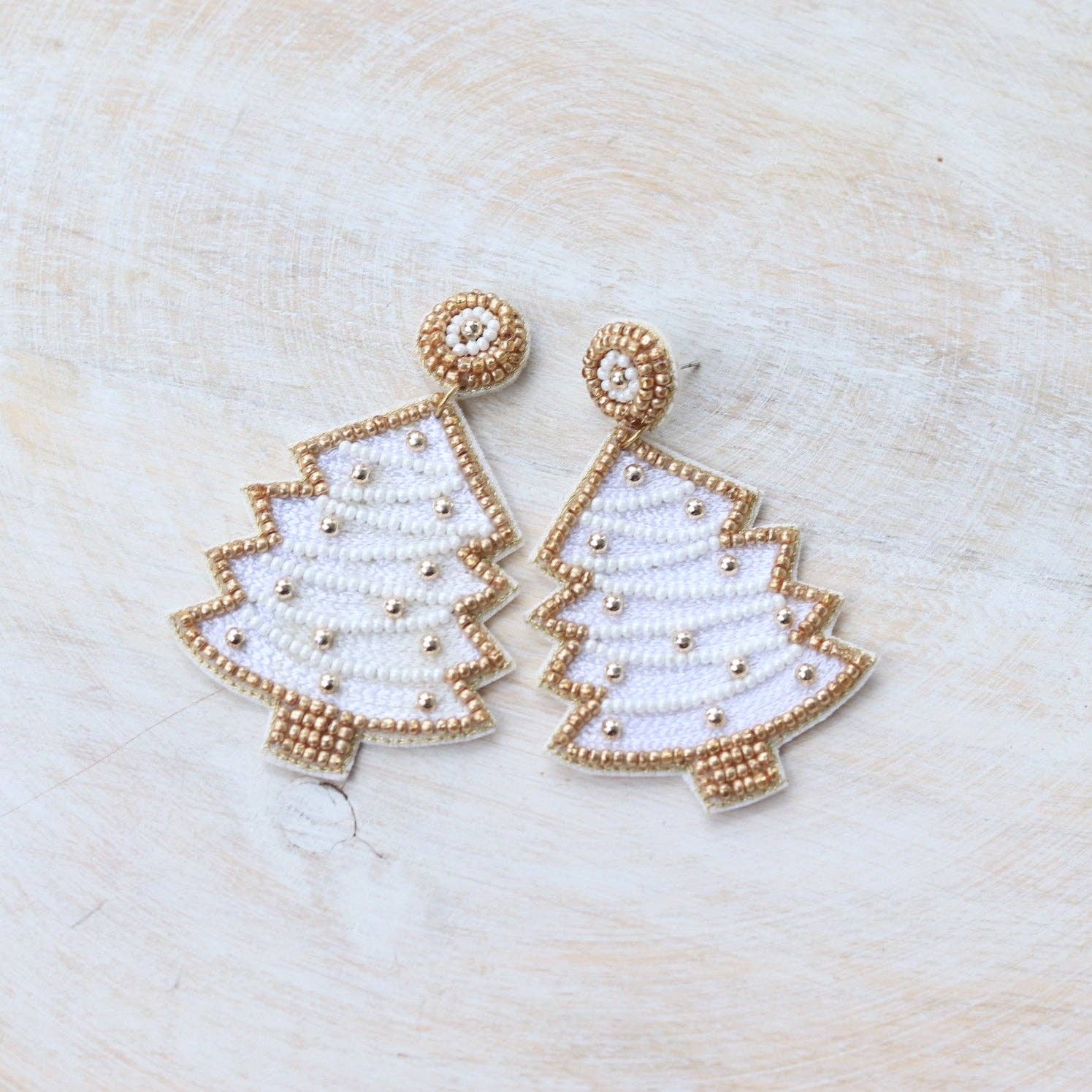 Custom Beaded White Christmas Tree Earring | HOLIDAY EARRINGS