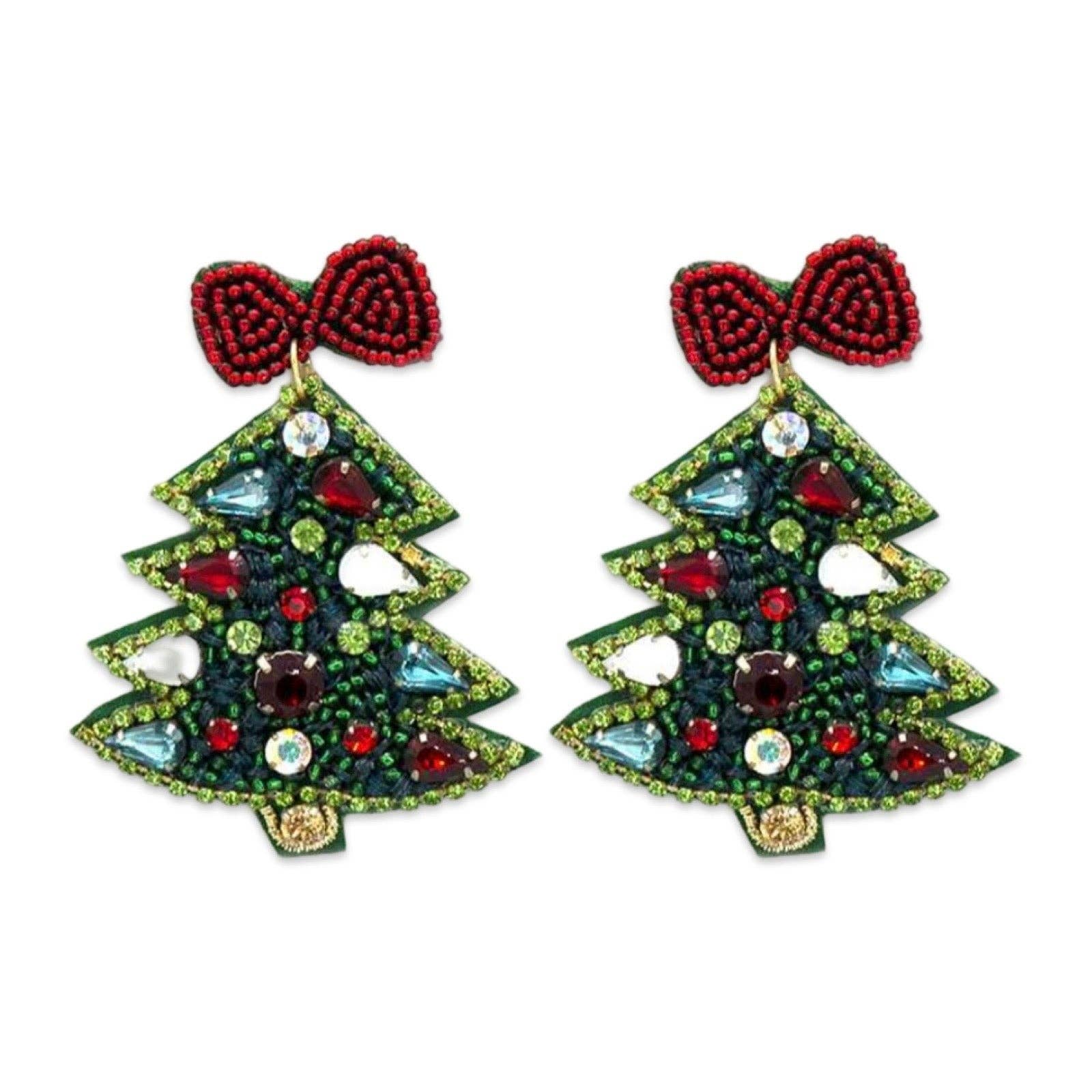 Green Crystal Christmas Tree Earring| Glitzy Gemstone Tree