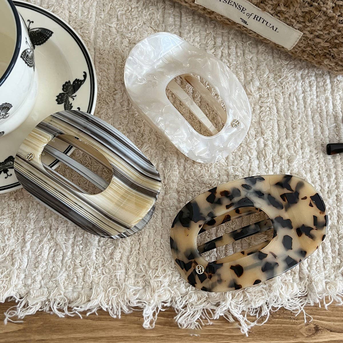 Oval Flat Hair Claw Lazy Retro Shark Clip_CWAHA08044